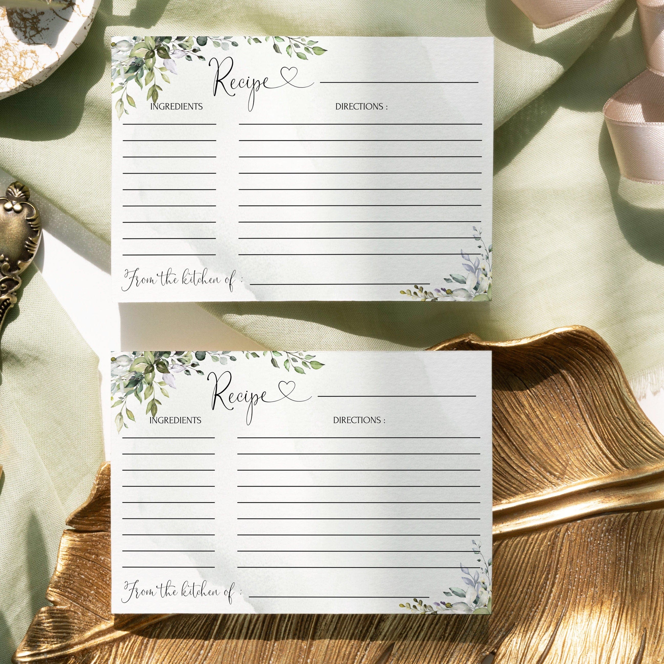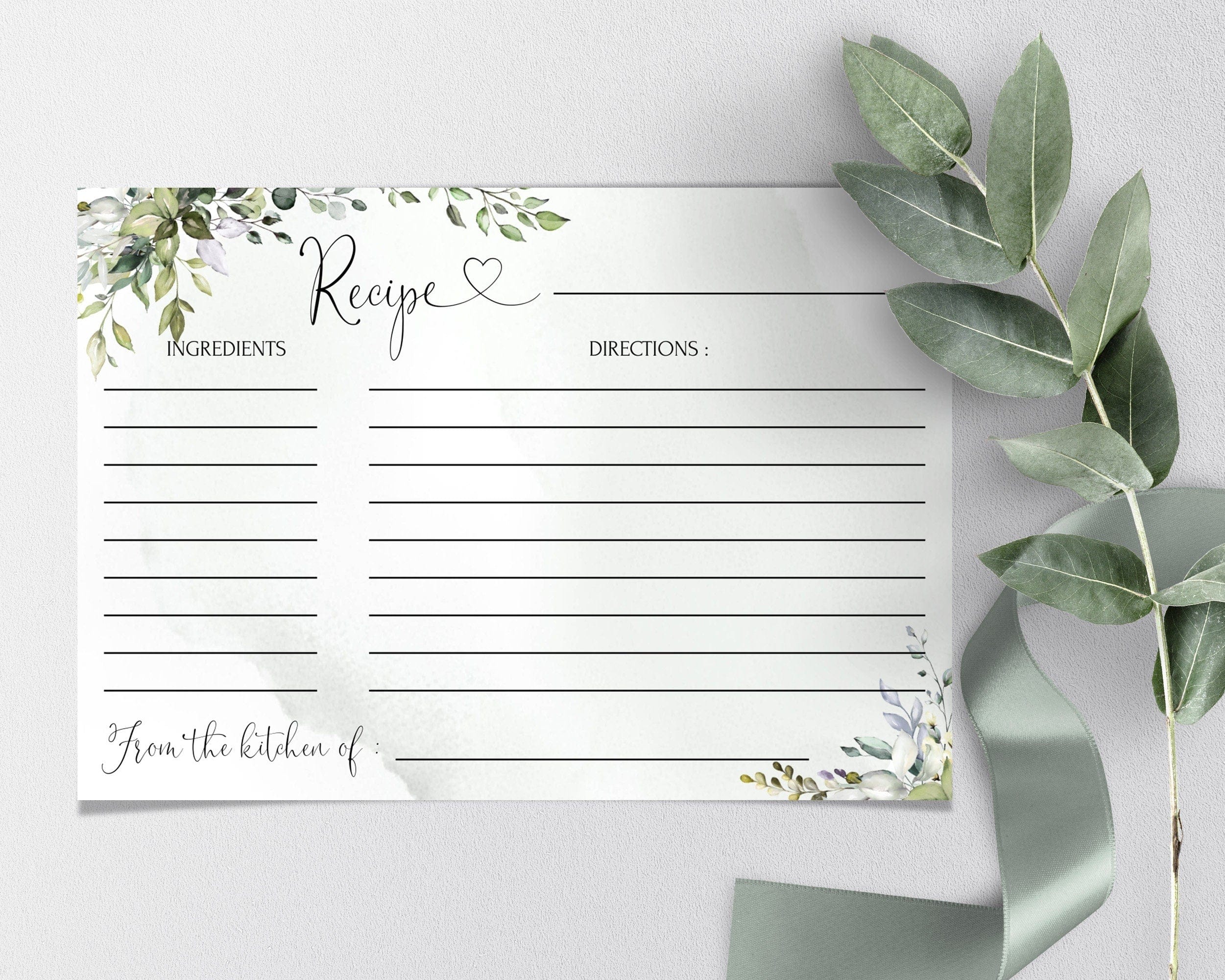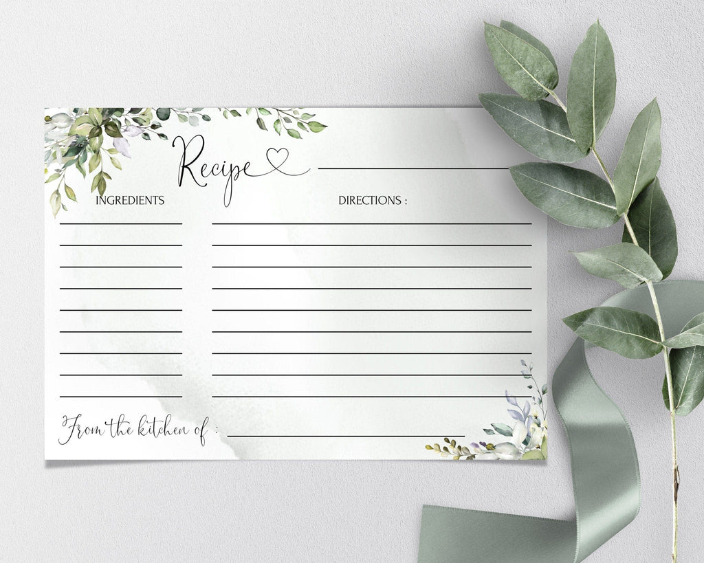 Greenery Recipe Card | 2 sizes | Eucalyptus Themed Templates