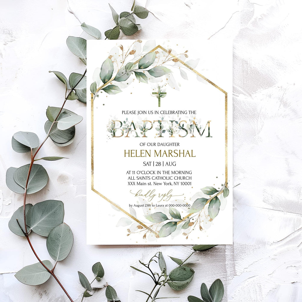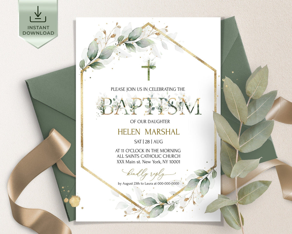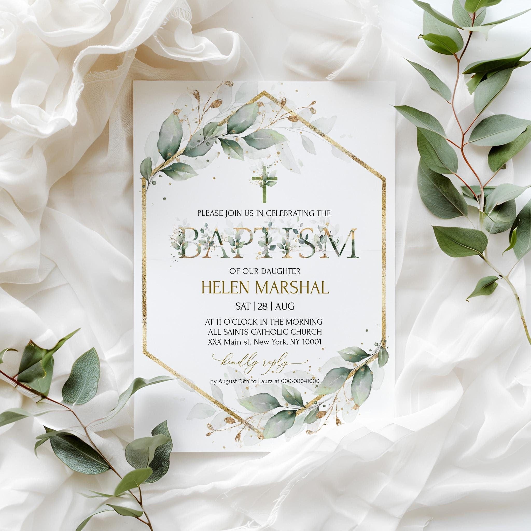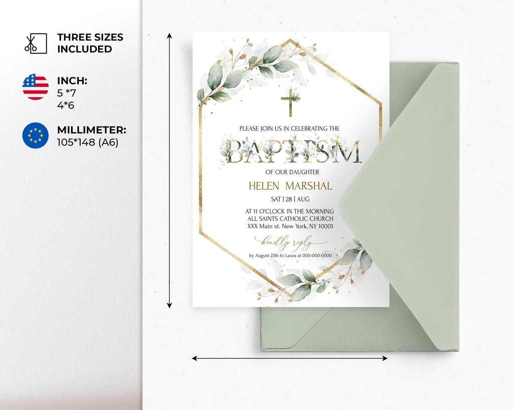 Elegant Gold Christening Invite | 3 Sizes | DIY Baptism