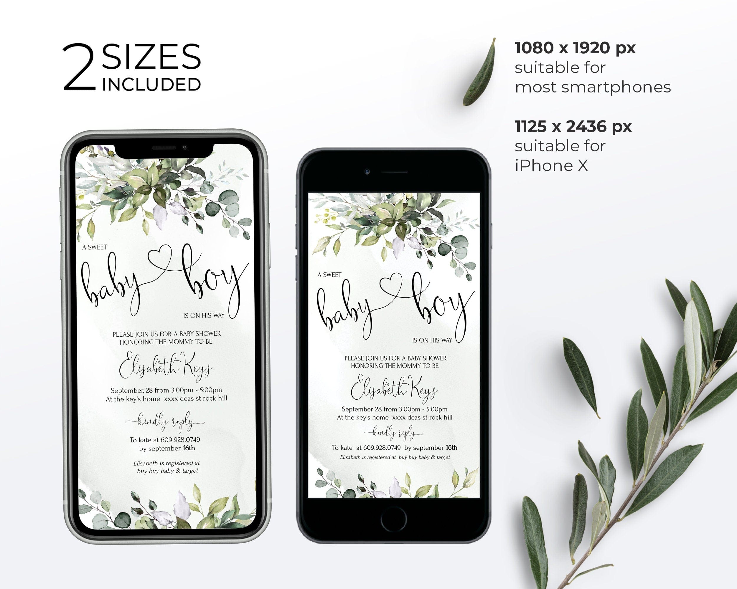 - Baby Shower Evites: 1080 x 1920, 1125 x 2436