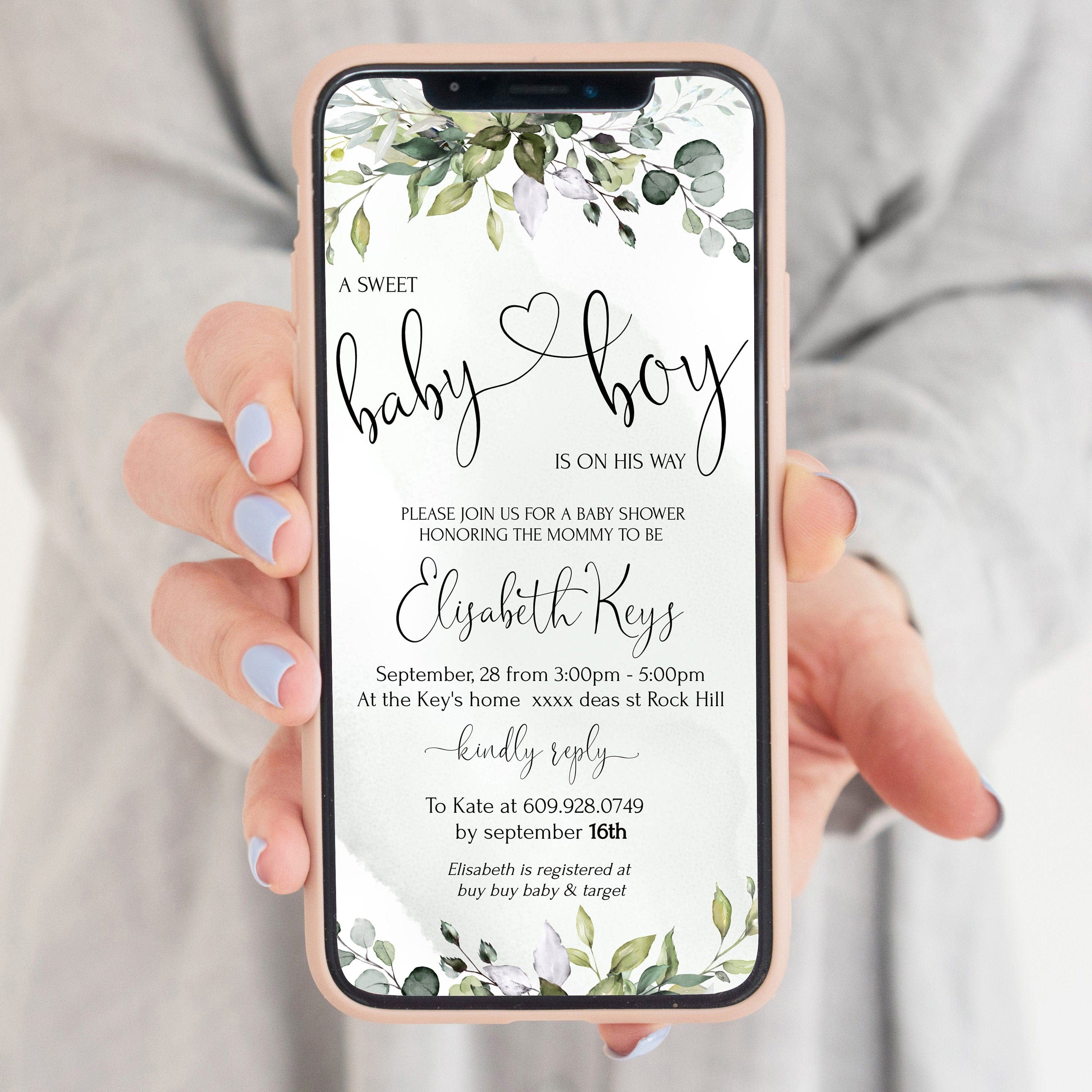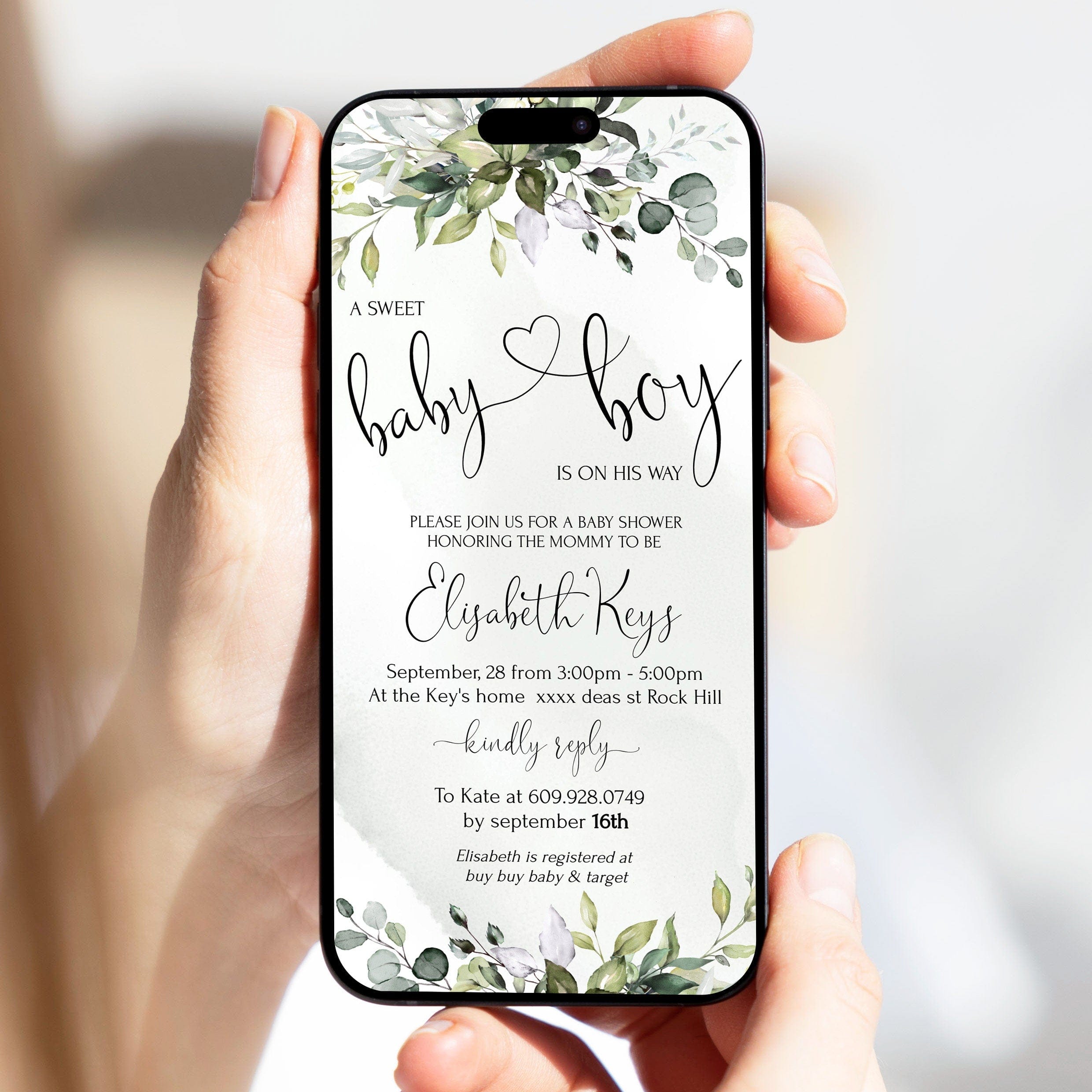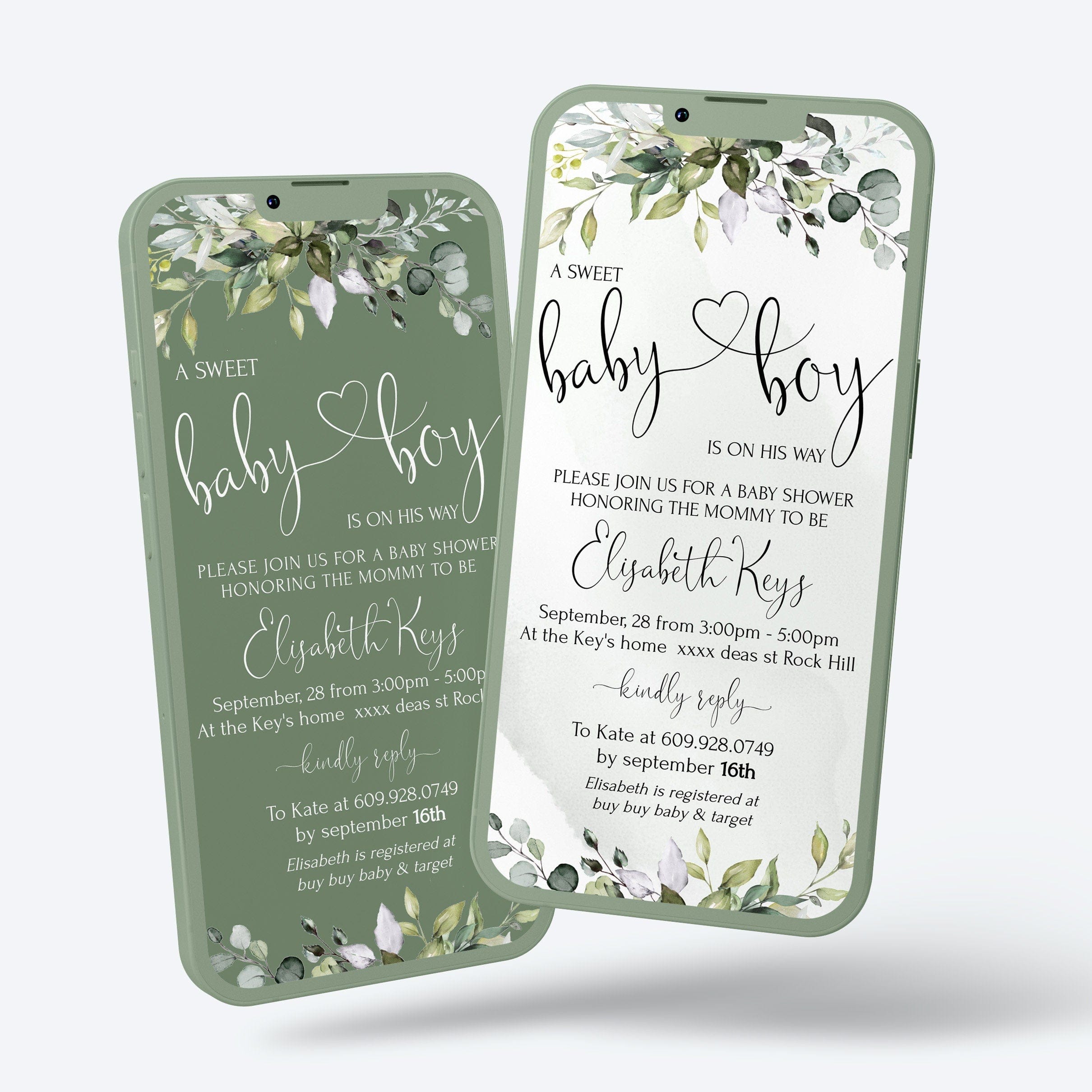 Digital Baby Boy Shower Evite for Text, EDITABLE Templates