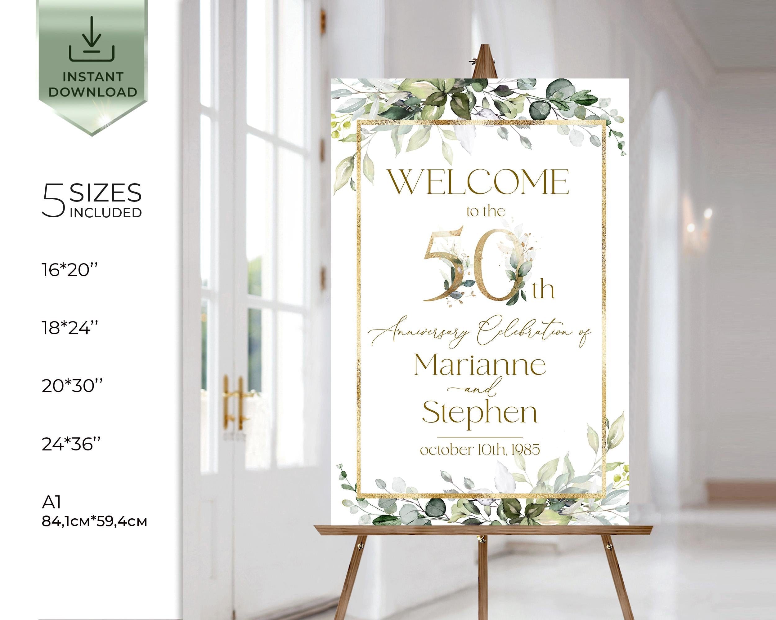 Sage & Gold 50th Anniversary Welcome Sign, EDITABLE Templates