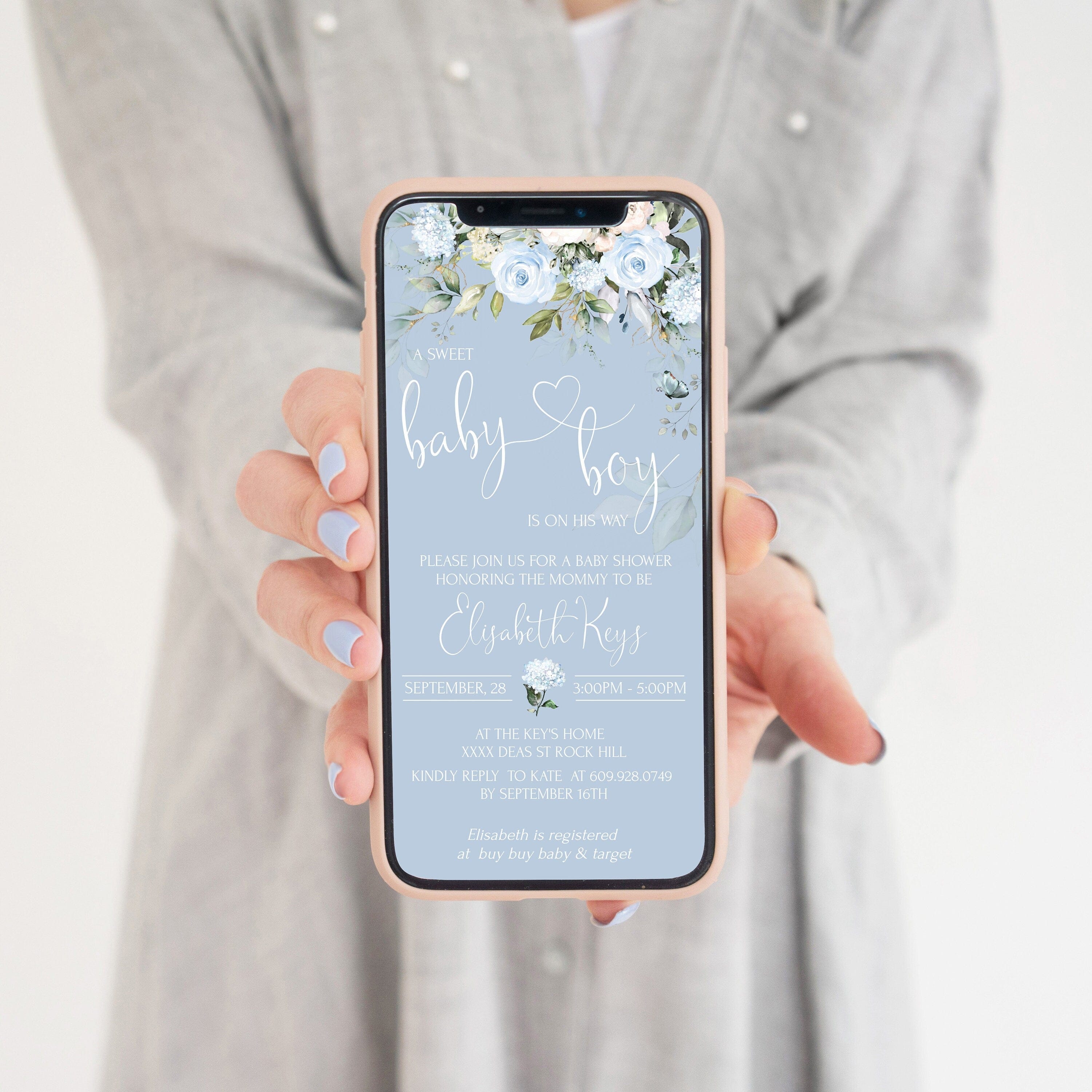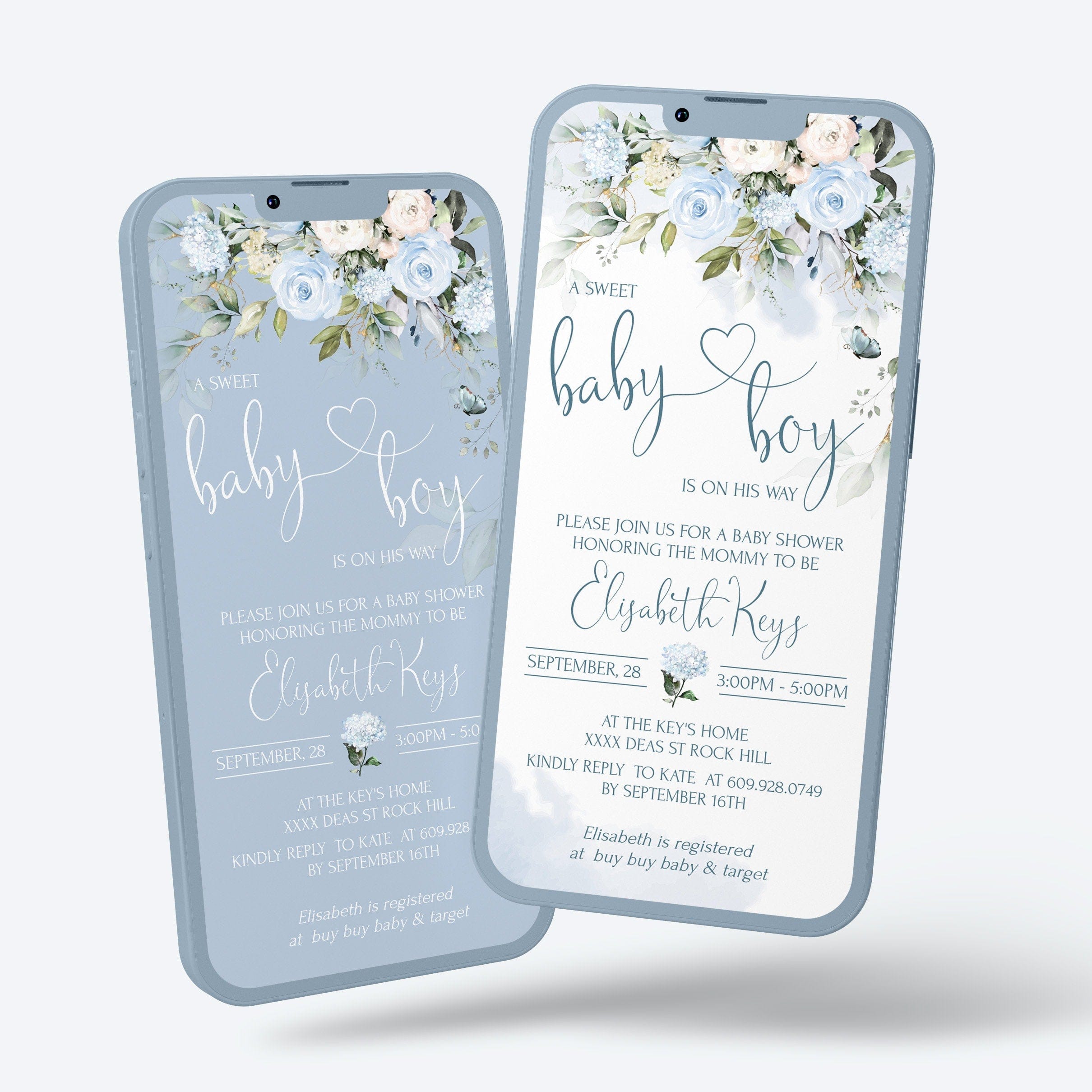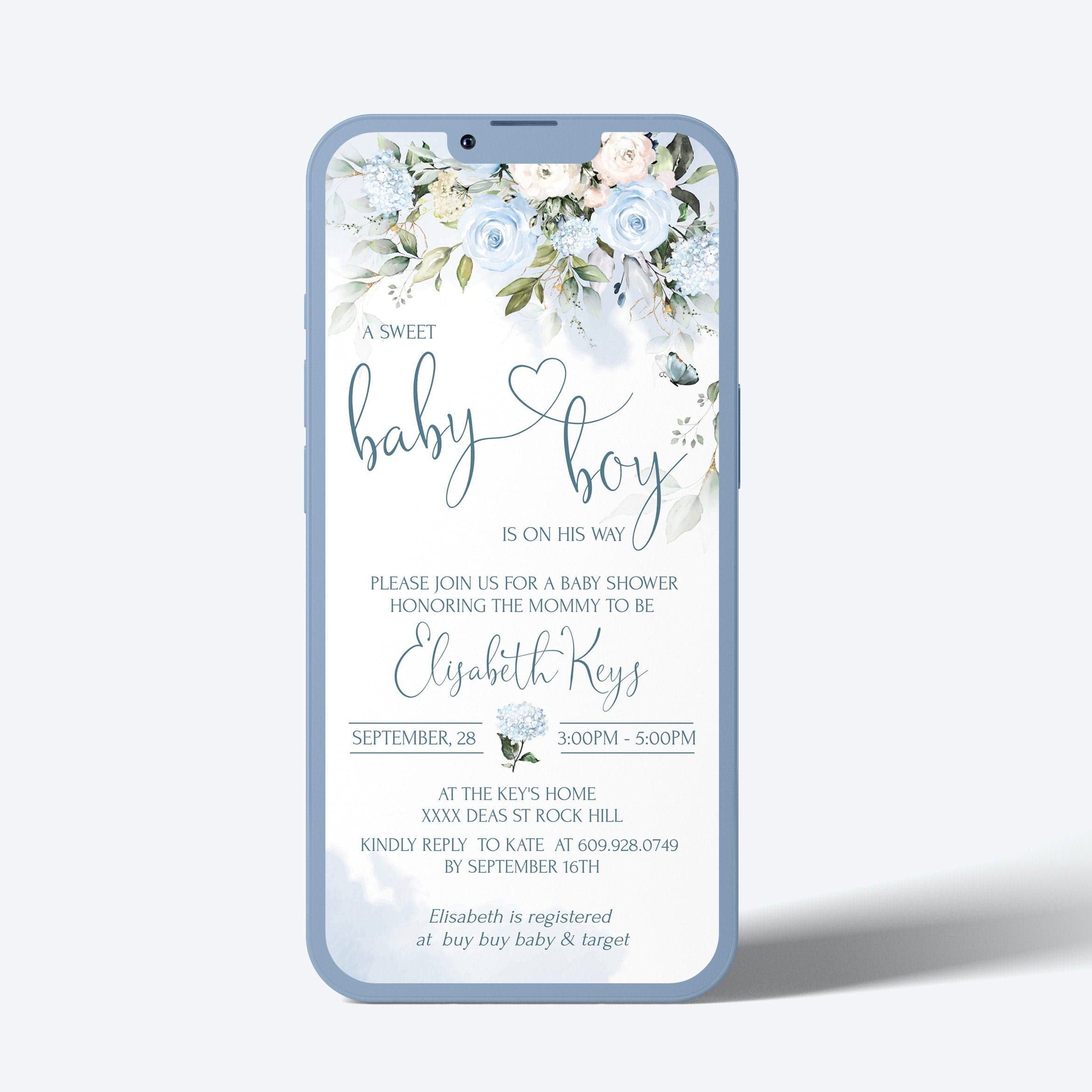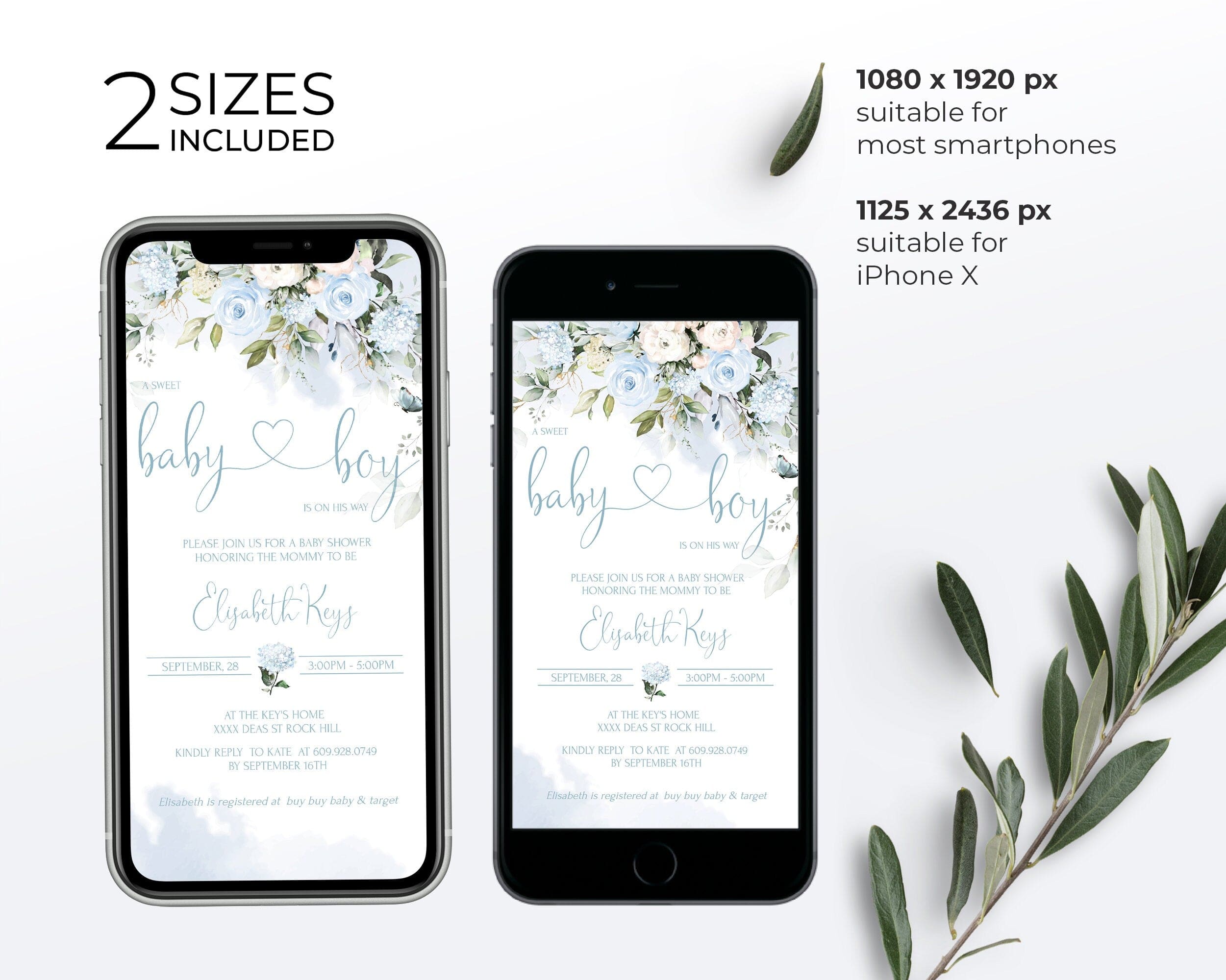 Blue Baby Boy Shower iPhone Invite, 2 Editable Templates, Digital Download
