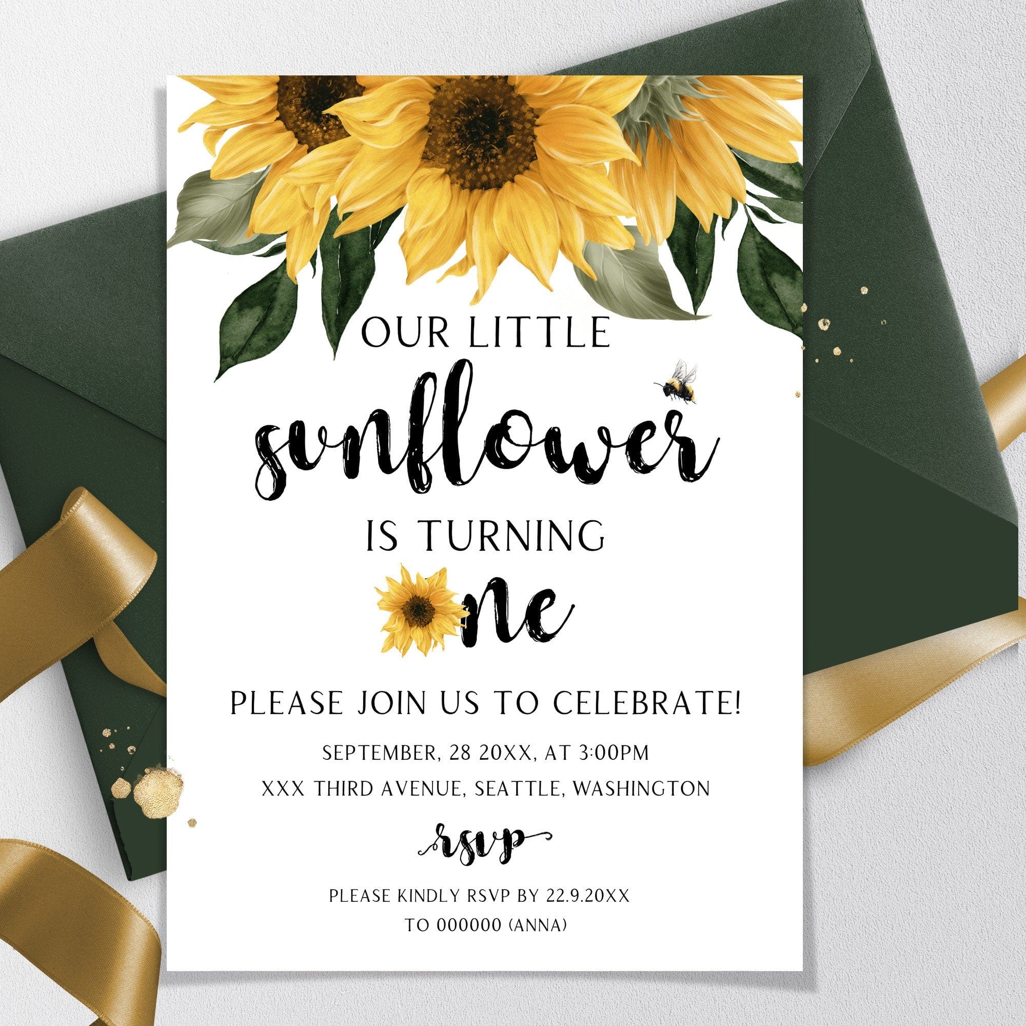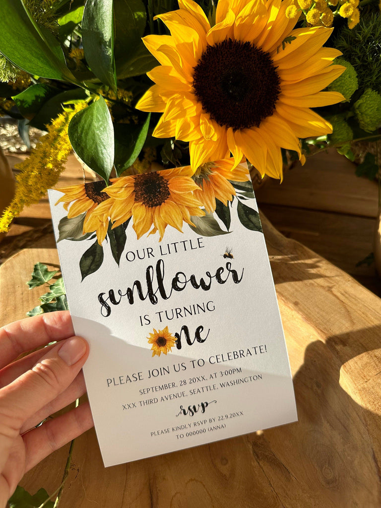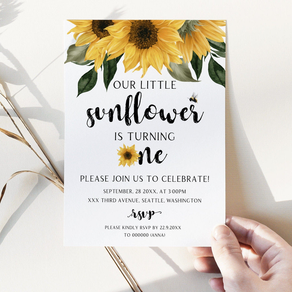 Sunflower First Birthday Invitation, EDITABLE Templates