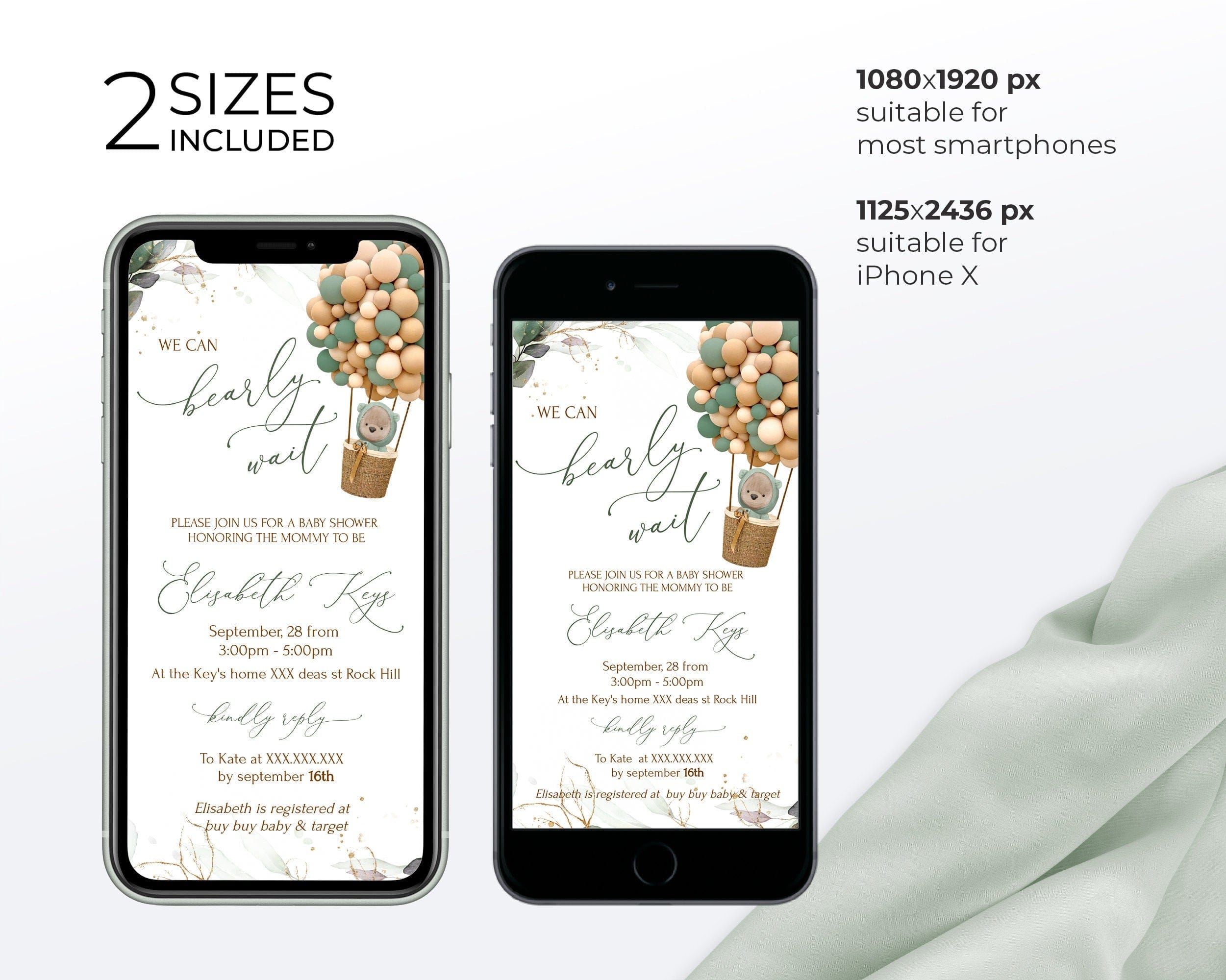- Online Invitations: 1080 x 1920, 1125 x 2436