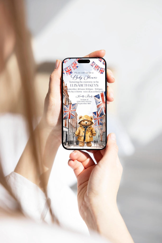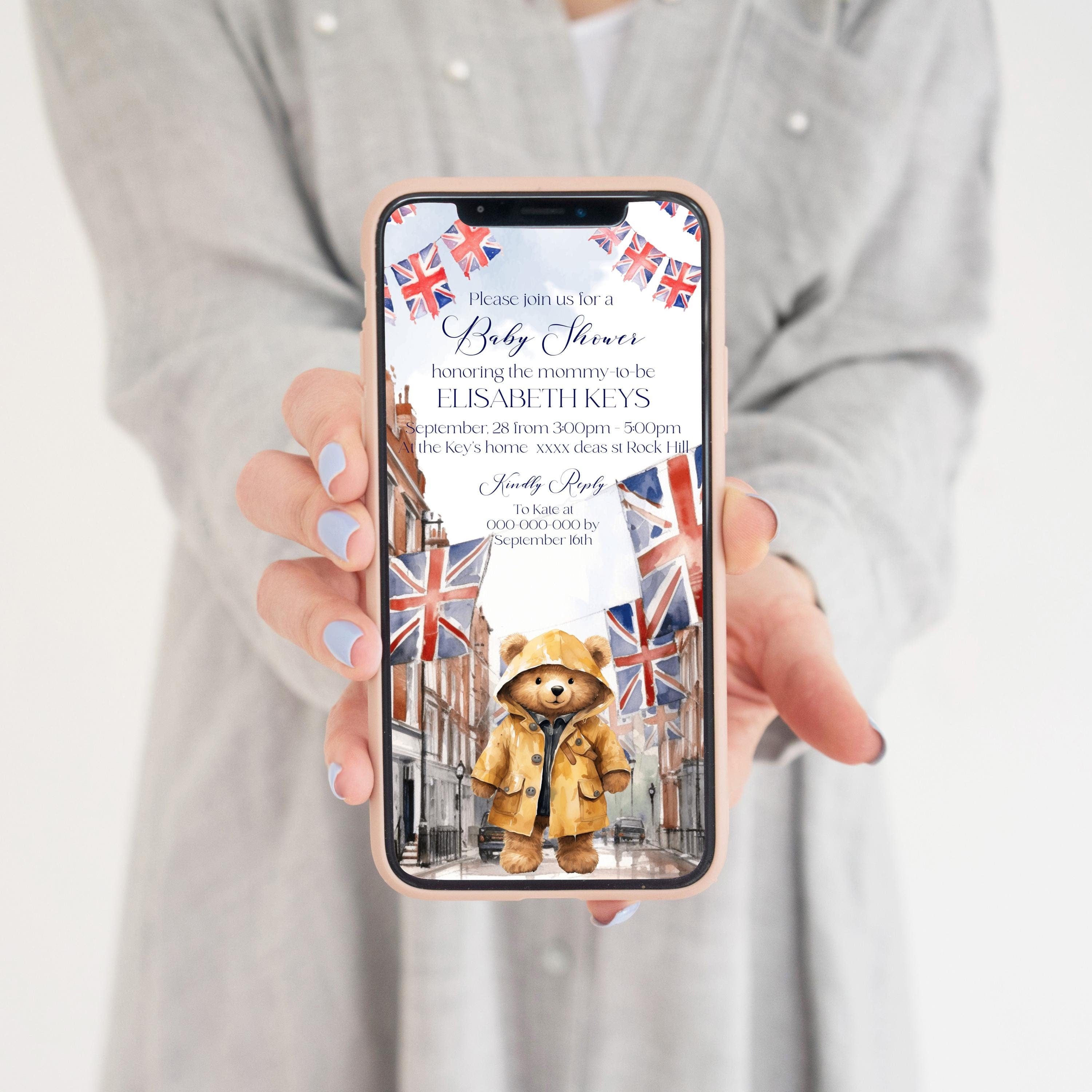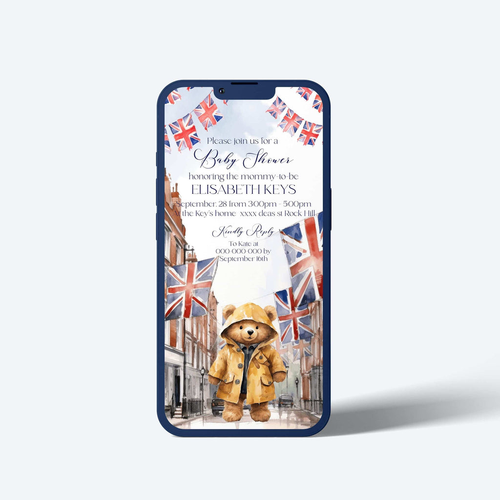 British Bear Baby Digital Invite | Boy Baby Shower Custom iPhone Invitation