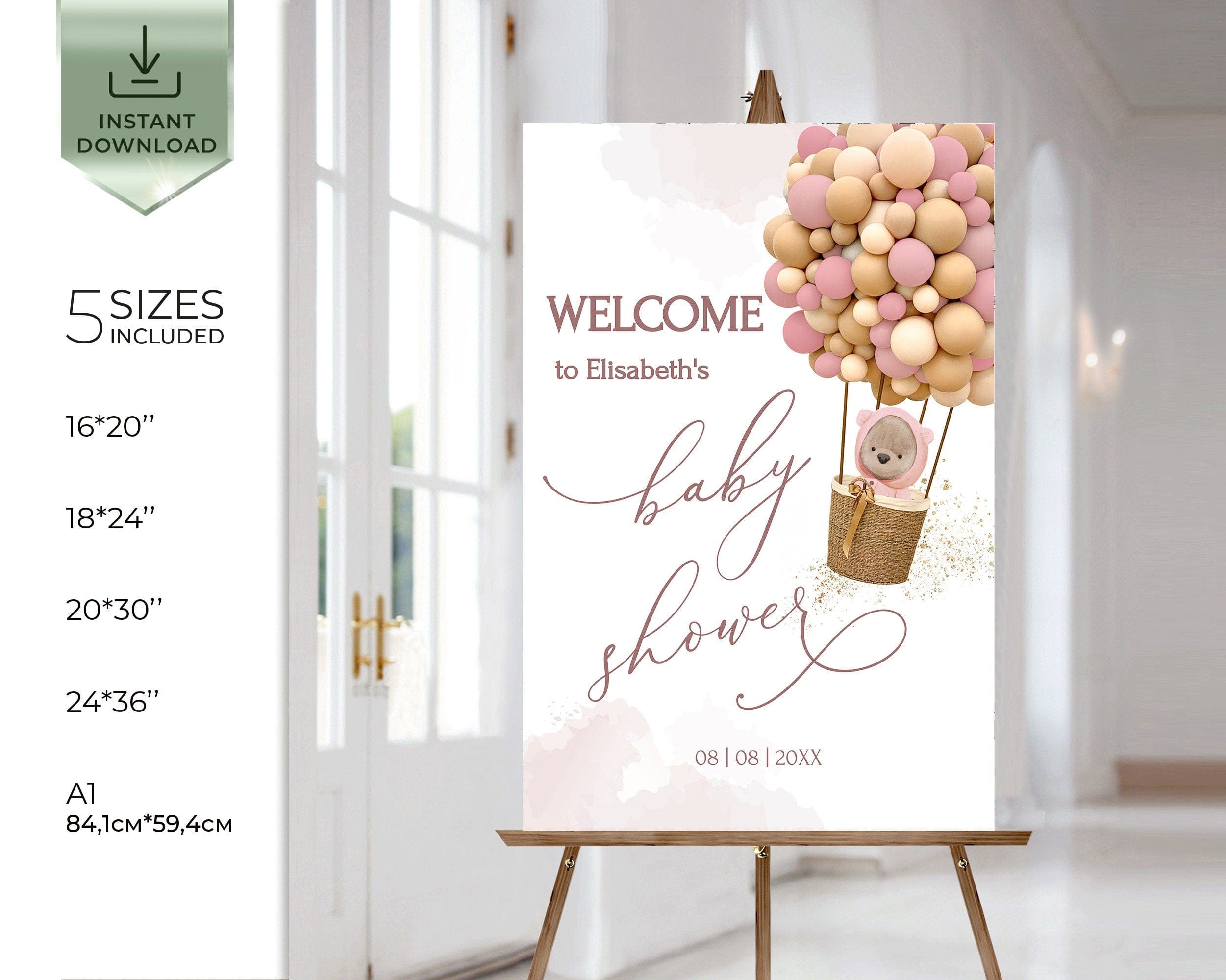 Pastel Pink Baby Shower Welcome Poster | 5 Sizes Included