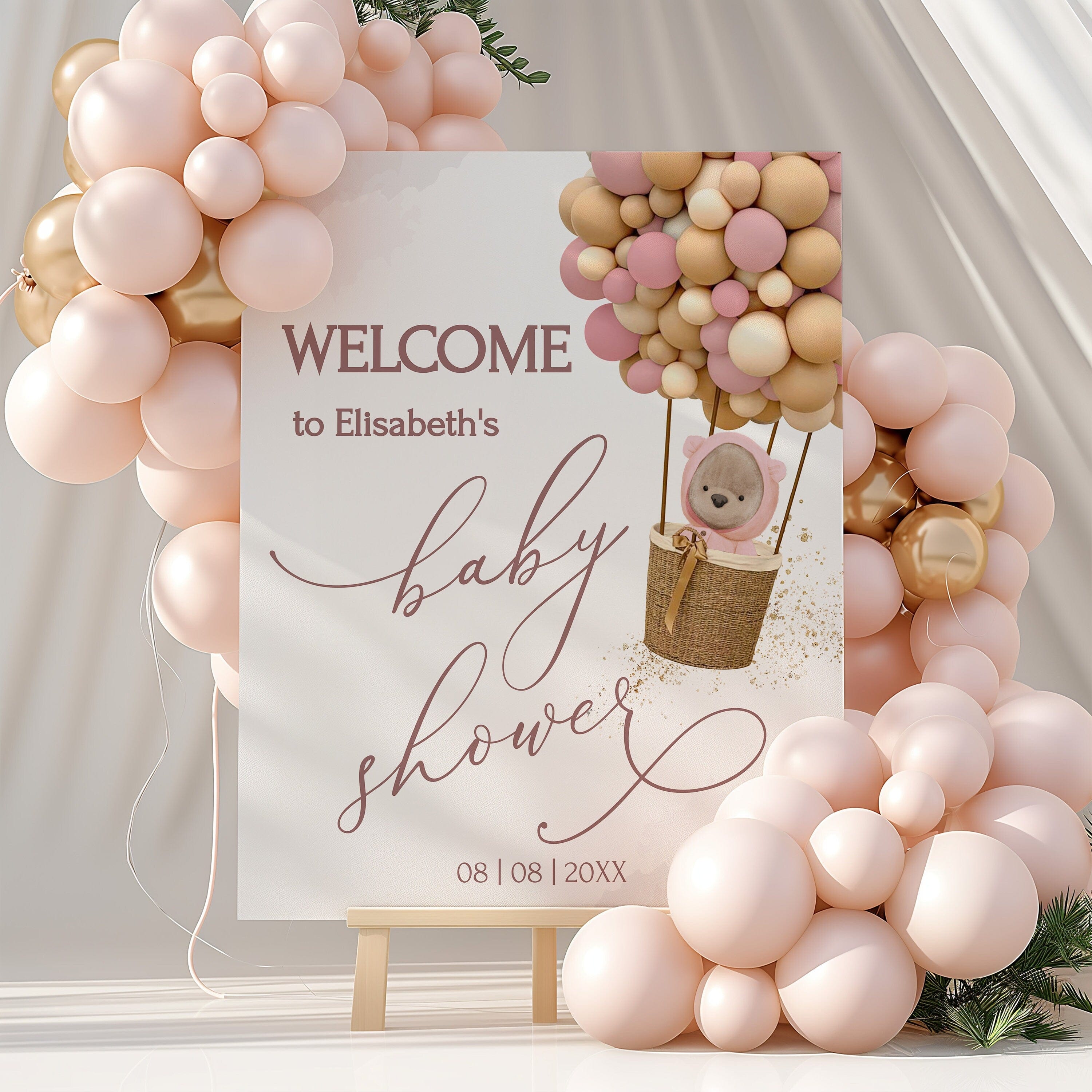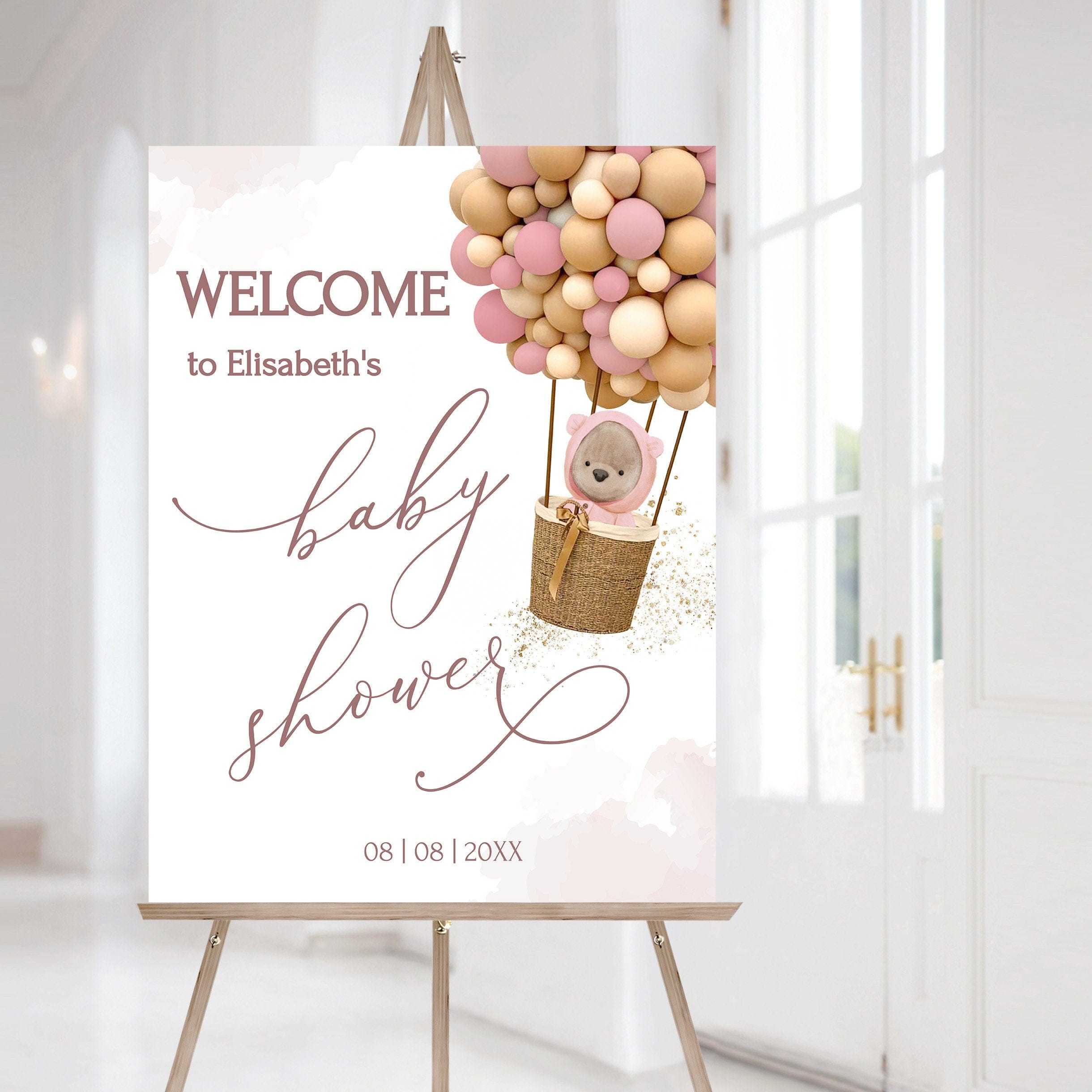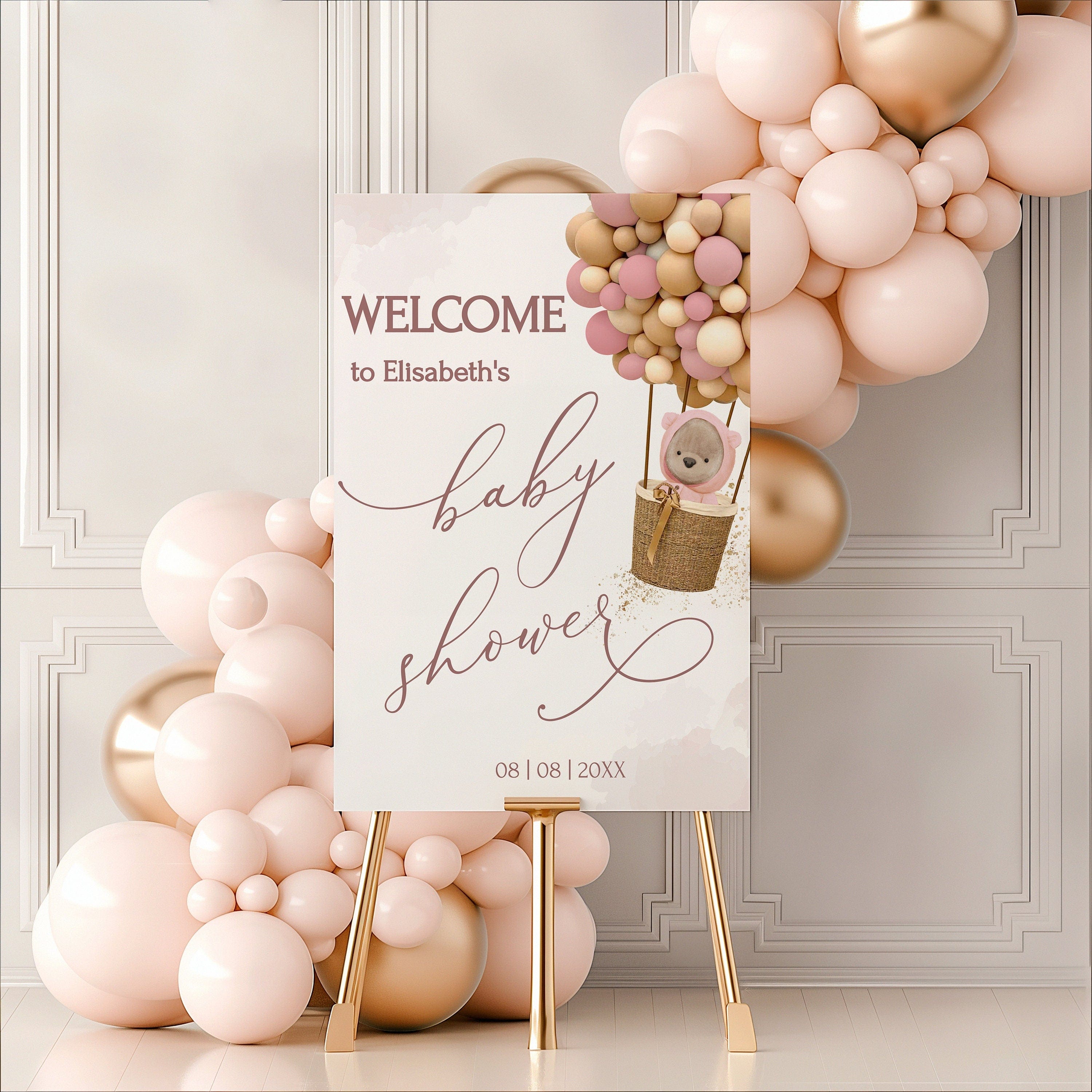 Pastel Pink Baby Shower Welcome Poster, Editable Templates