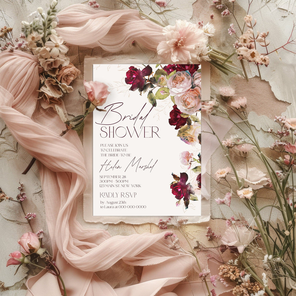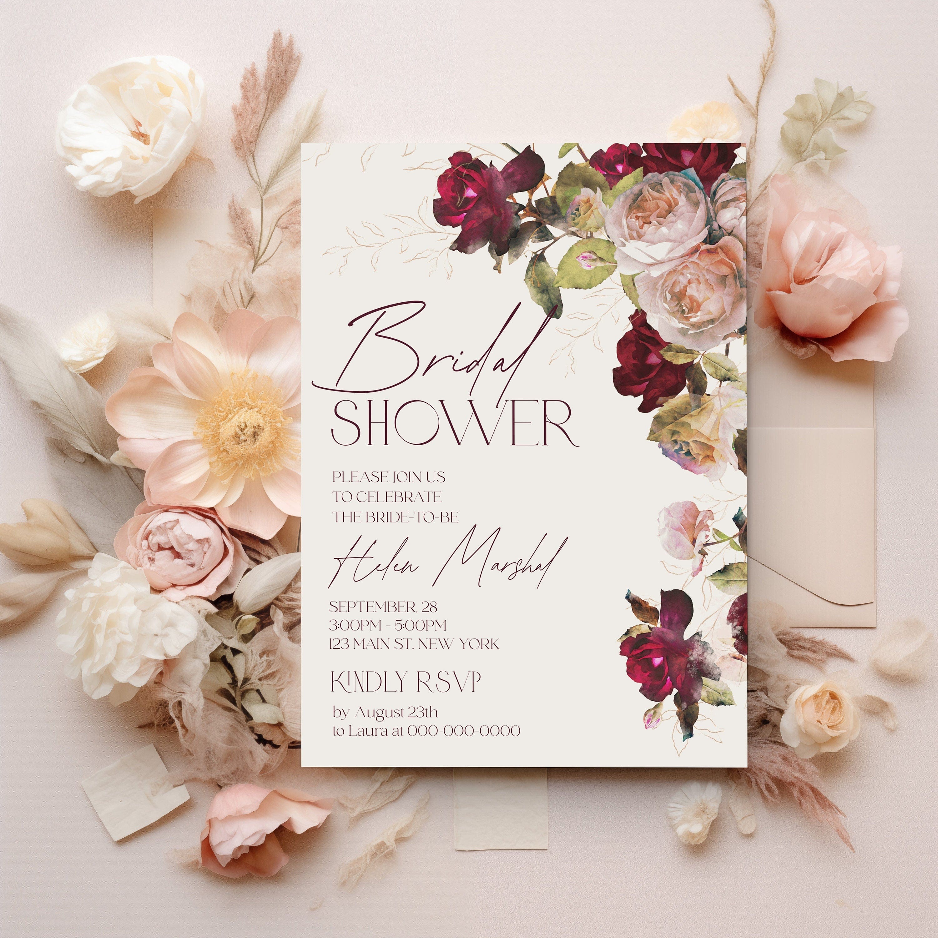 Vintage Burgundy & Blush Bridal Shower Invitation | DIY Bride Inspo