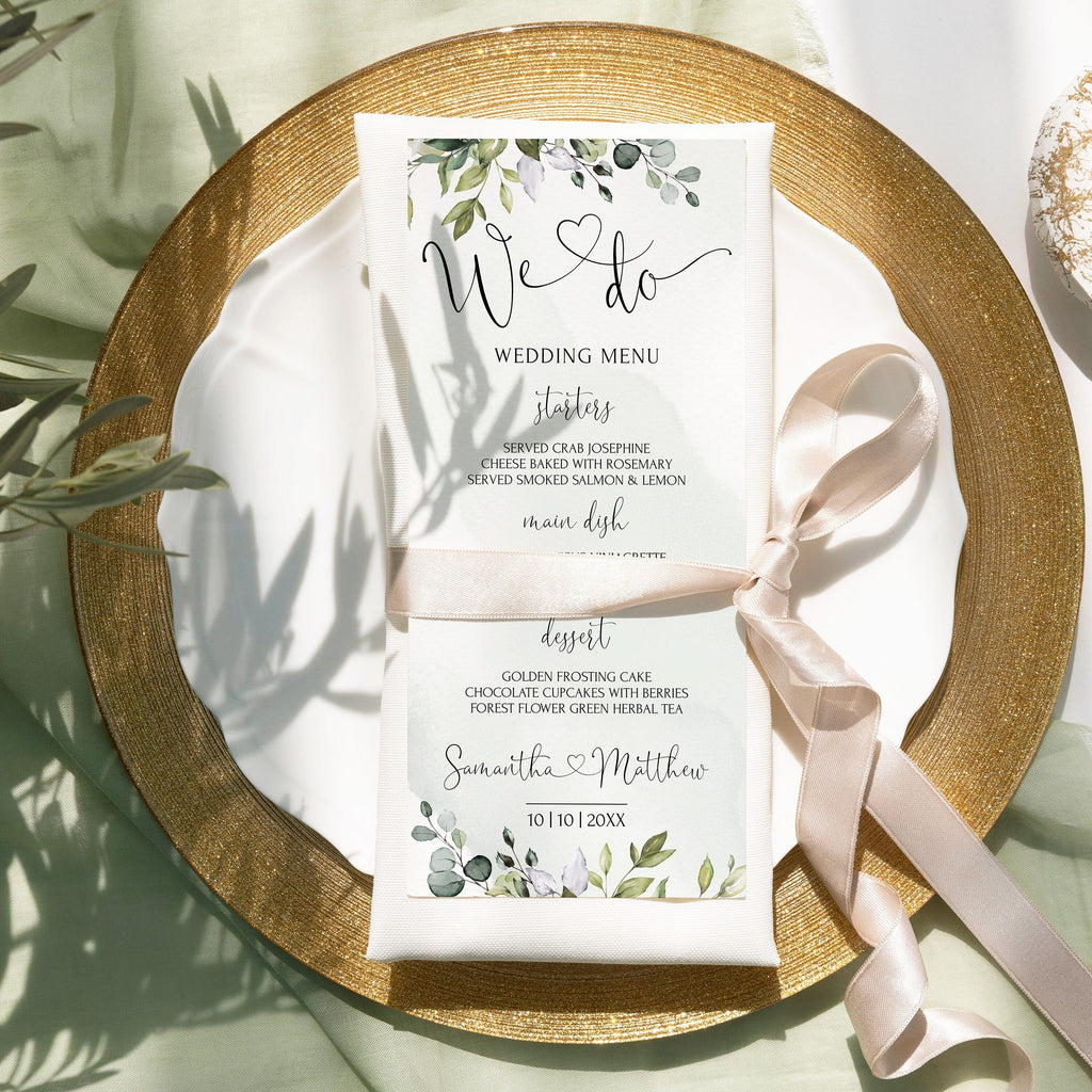 Wedding Menu & Thank You Cards | Printable Modern Wedding Menu