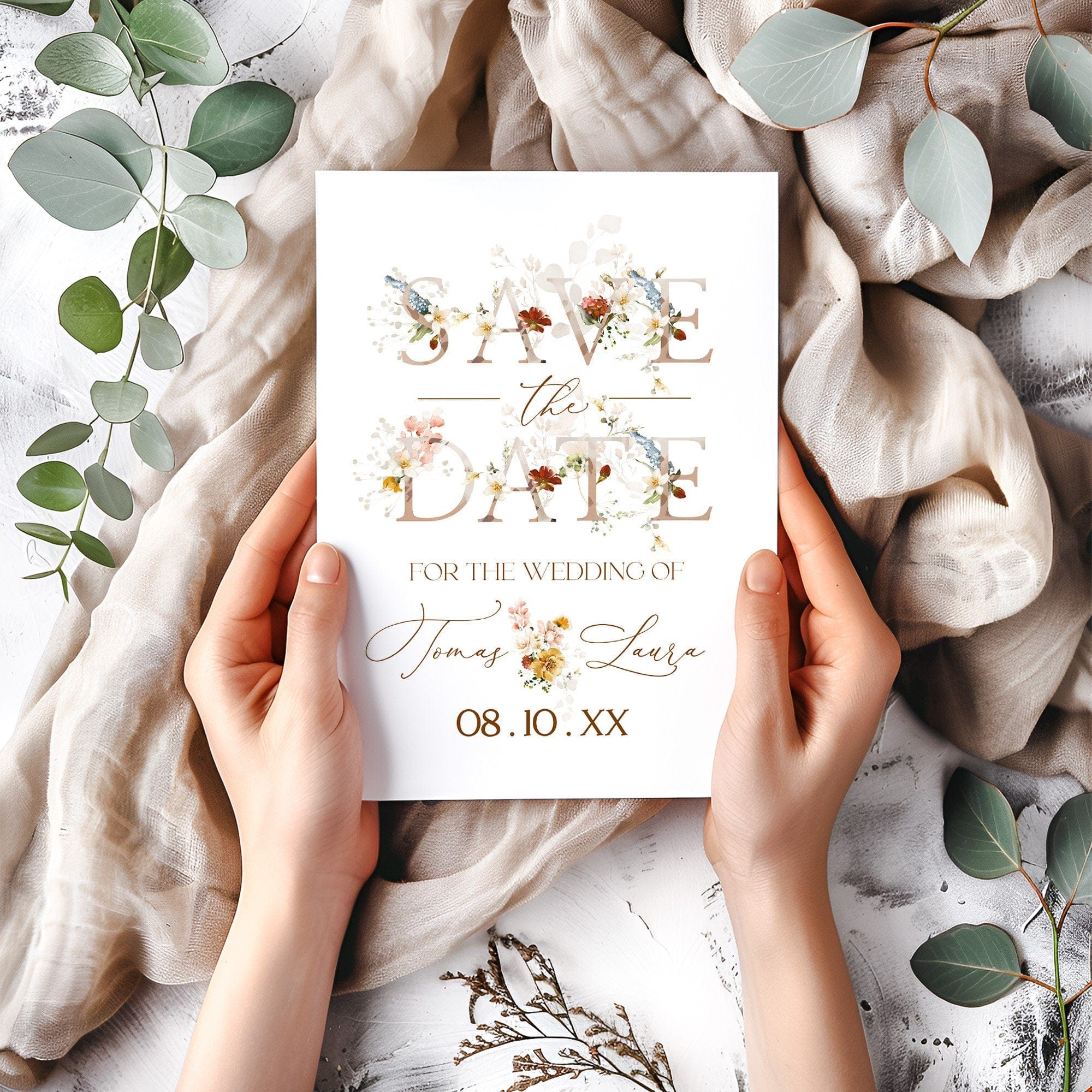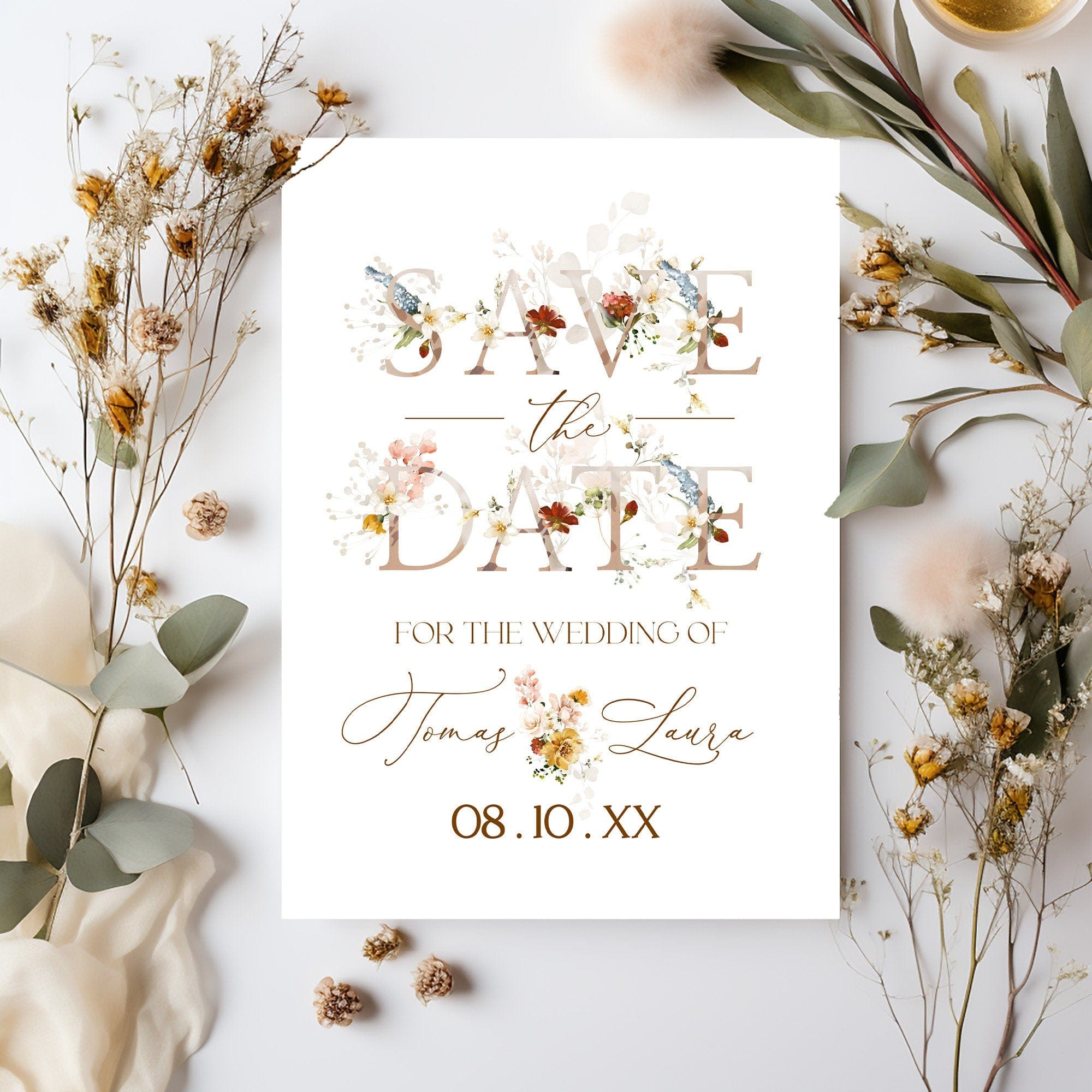 Garden Floral Save the Date Card, EDITABLE Templates