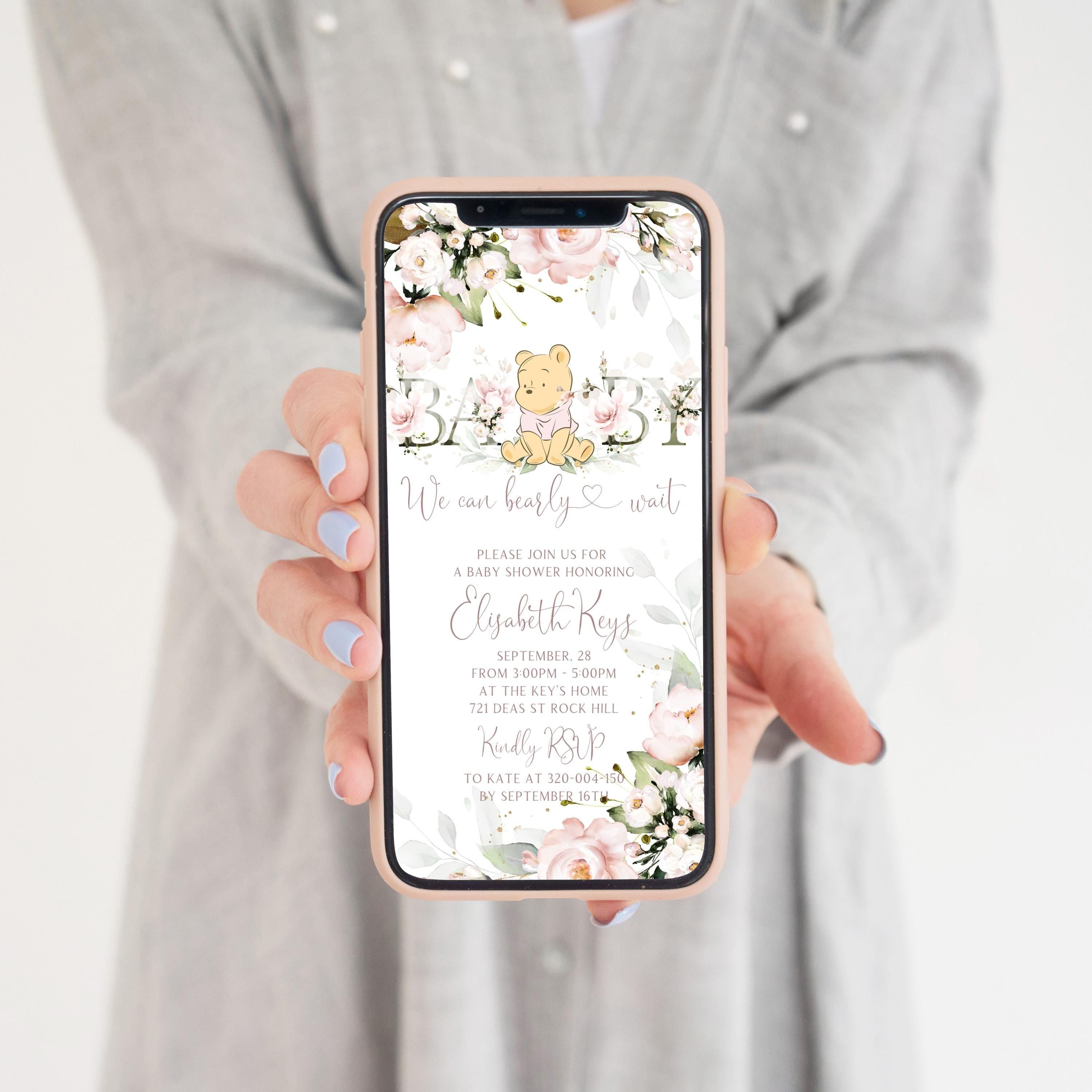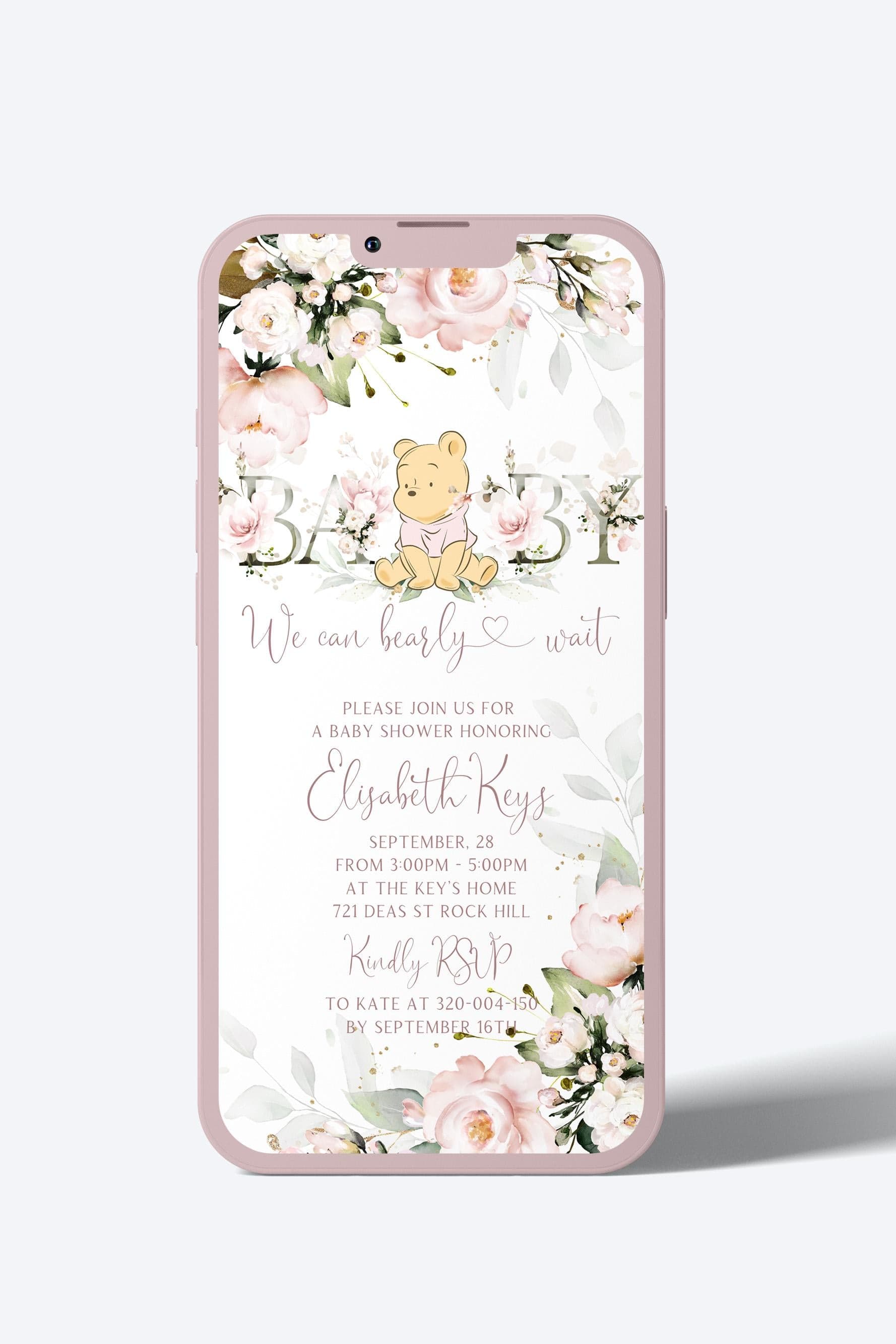 Pink Floral Bear Baby Shower Mobile Invite | Winnie the Pooh Theme