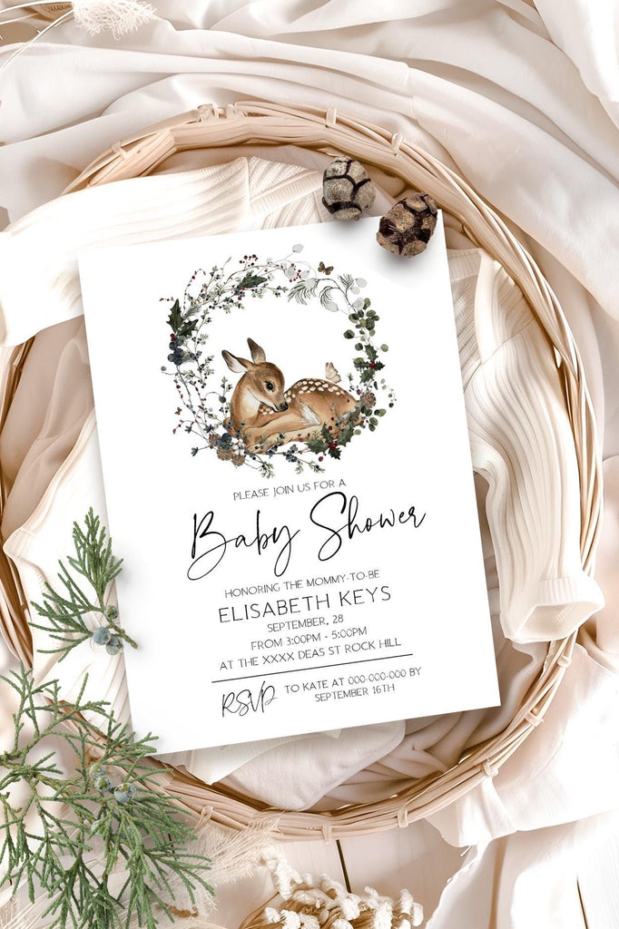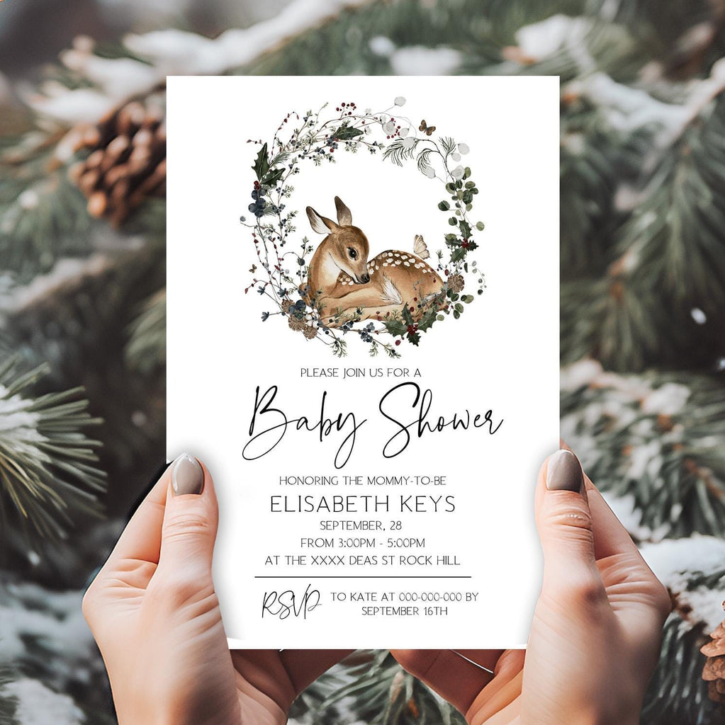 Woodland Baby Shower Invite | 3 Sizes | DIY Christmas Baby Shower Décor